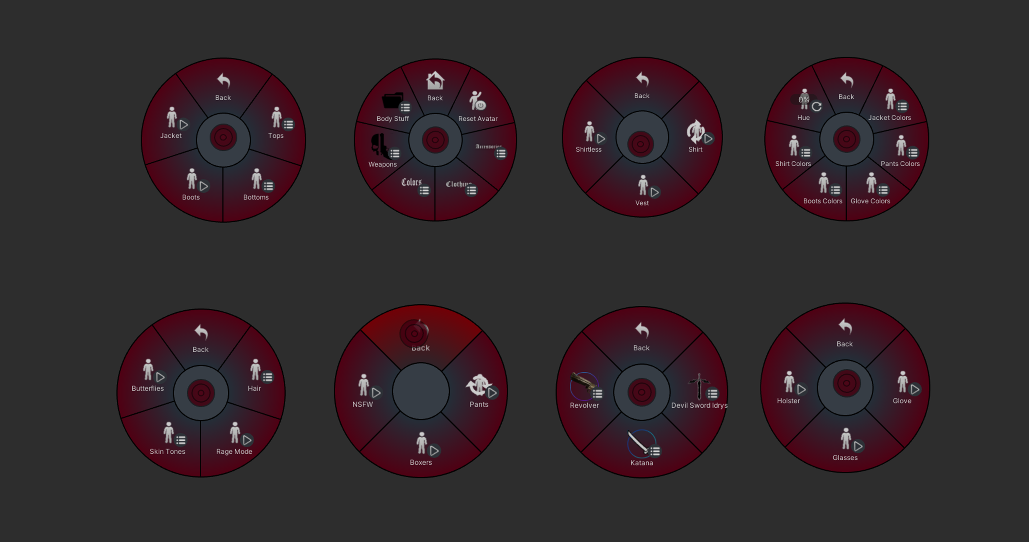 Accessories Toggles: Gloves, Glasses, Holster/Harness